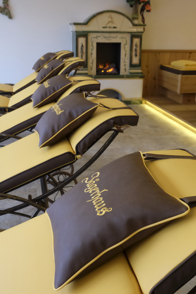 Erholen Sie sich in unserer Jägerhaus-Wellness-Landschaft mit Sanarium, Infrarotkabine, Dampfbad, großer finnischer Sauna in Altholz. Relaxen Sie im großzügigen Ruheraum mit Kamin.